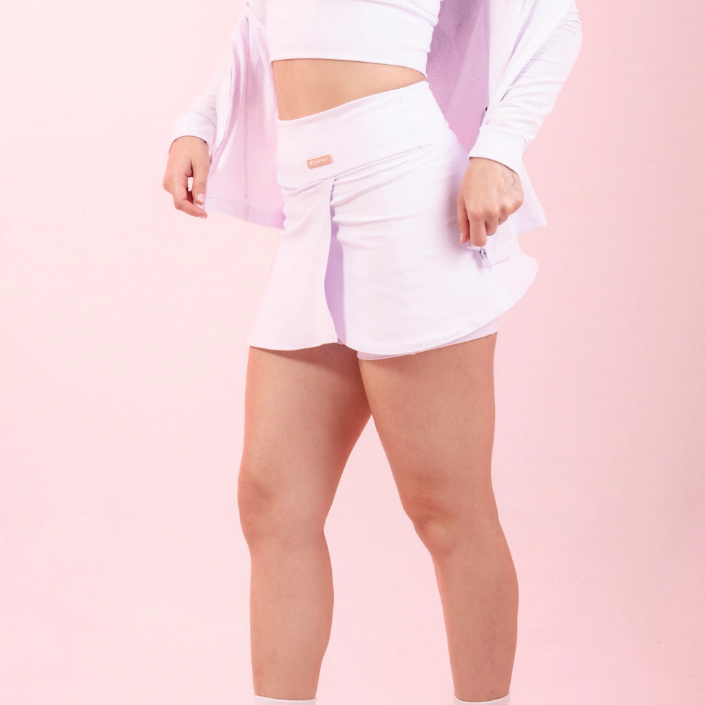 Short saia traspassado assimétrico! Cós alto e com tecido duplo, bolso lateral interno dos dois lados do short para guardar o máximo de coisas possíveis. Esse short saia é a cara da coleção Obsession e foi inspirado no grupo das poderosas de Meninas Malvadas e vai ficar perfeito como opção de look pra treinar!