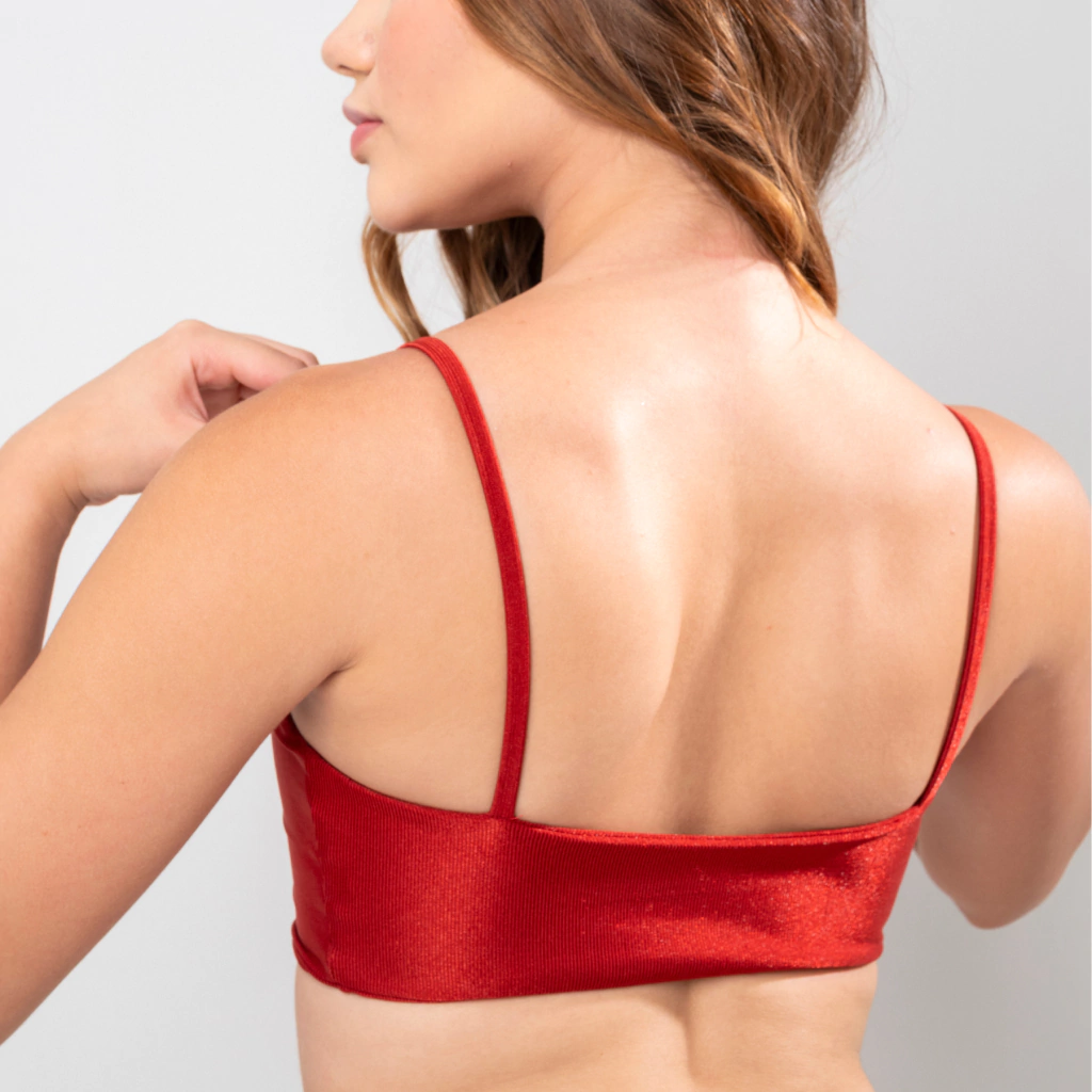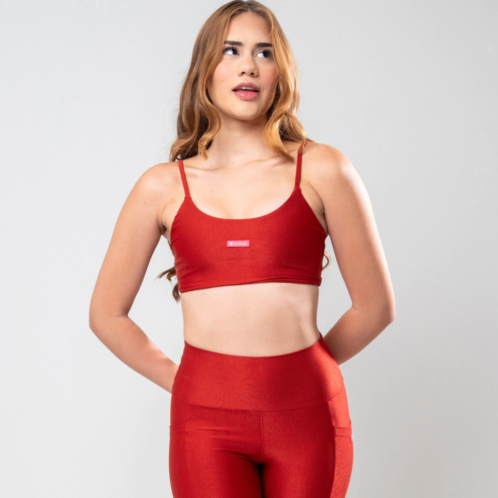 Top básico com alças finas e elástico em todo comprimento do top ( busto, lateral e costas) para proporcionar maior sustentação e segurança na prática de exercícios. Possui entrada para bojo removível, tecido canelado com brilho discreto, tecnologia anti-odor e proteção UV.